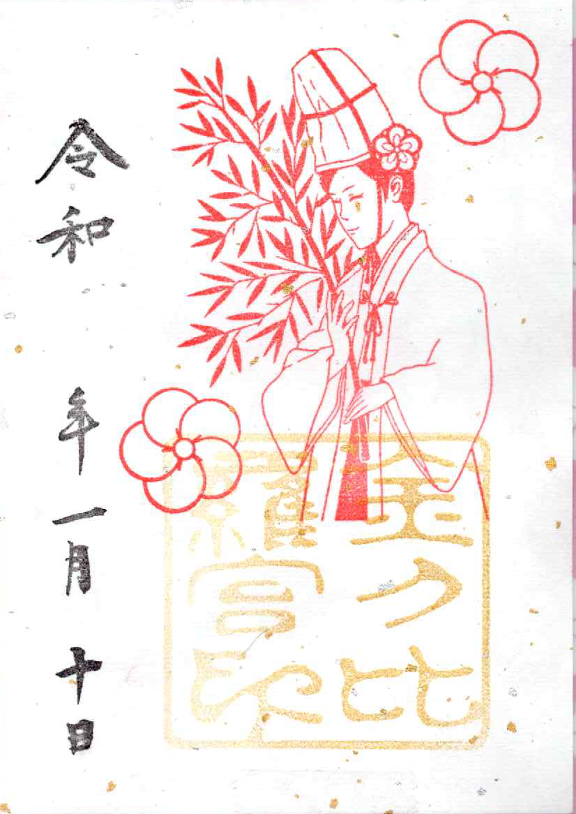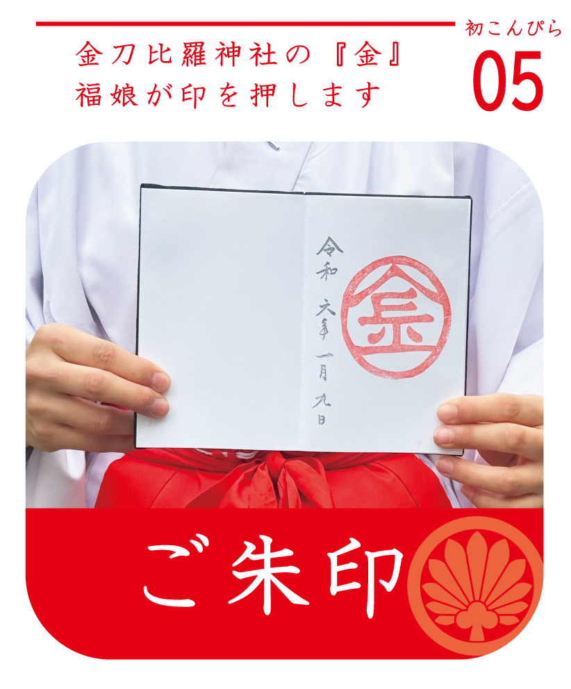 初こんぴら祭の限定の御朱印となります。金刀比羅神社のお祭りである初こんぴら祭。その金刀比羅の「金」の文字をハンコにして御朱印といたしました。福娘が押印いたします。