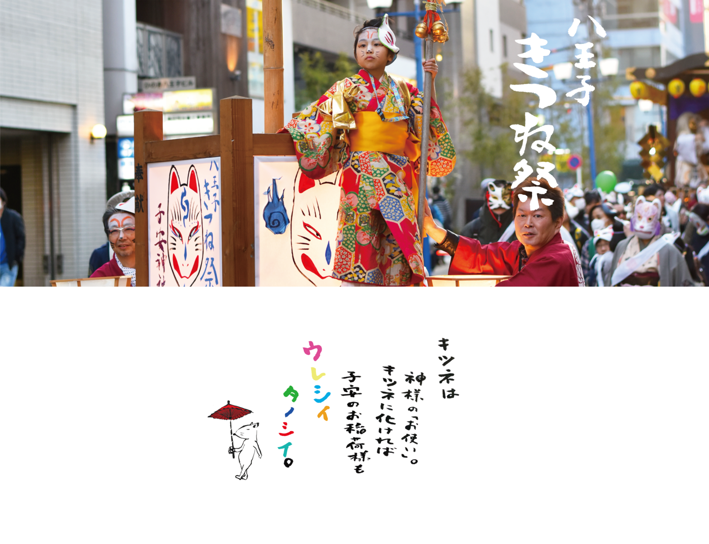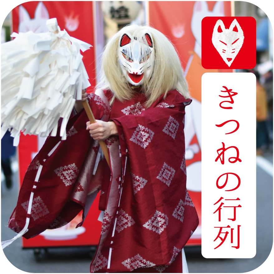 夕方に狐の仮装をして八王子の街を歩きます。行列に参加するには予約が必要です。
