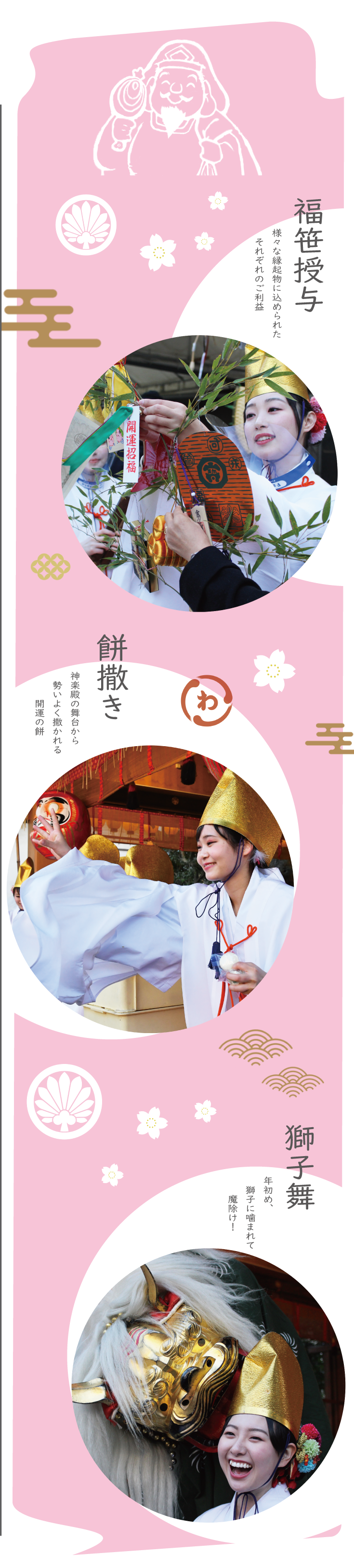 福娘は、年初めに参拝客に福を与える、福の神のような女性のことです。関西を始め、全国的にも有名です。