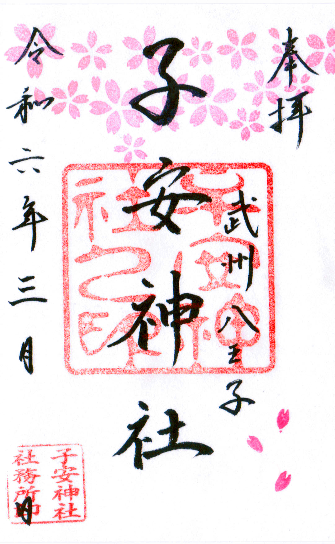 通常朱印に桜の花びらを追加で捺せるハンコをご用意します。ご自身で好きなように捺して彩を付けてお楽しみください。