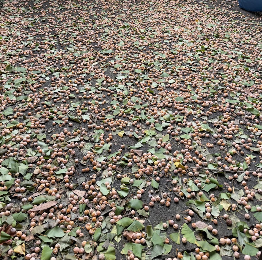 At Koyasu Shrine in Hachioji, Tokyo, golden ginkgo nuts ripen beautifully within the sacred inner grounds as autumn deepens.