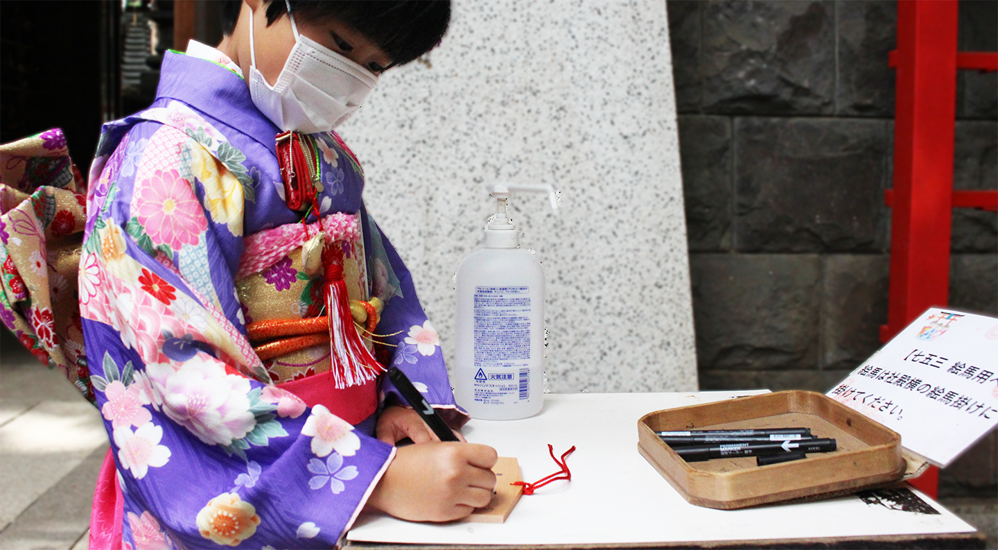 「七五三の日」の十一月十五日を中心に、三歳の男女児、五歳の男児、七歳の女児が晴着を着て神様に御参りする行事です。無事に七五三を迎えられた事を神様に報告・感謝し、今後の健やかなる成長のご加護を祈願します。